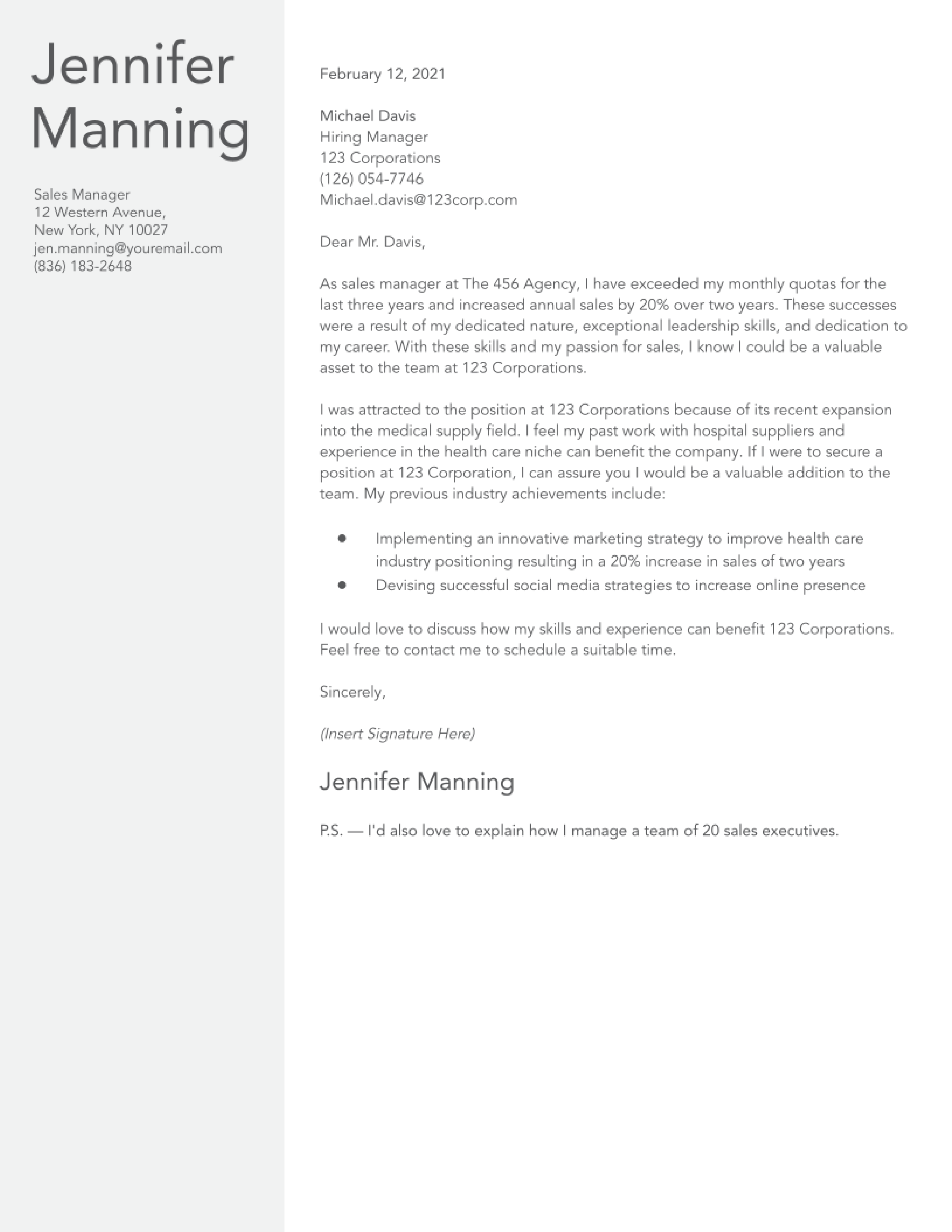 . Web A sales cover letter template for you to copy adjust to your specifications and have ready in under 15 minutes. Web A sales manager cover letter should include how long youve been in the industry how many people youve managed your previous positions your sales quota. Ad Complete Samples Tips and More.